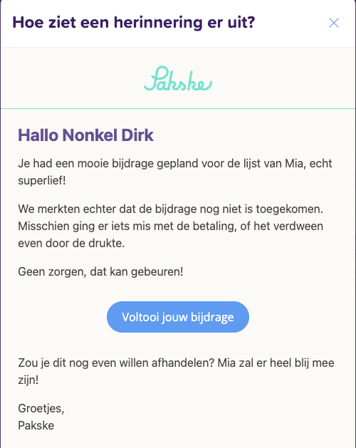 ❌ Heb je het geld nog niet op je rekening ontvangen? Je kunt een herinnering sturen via Pakske :